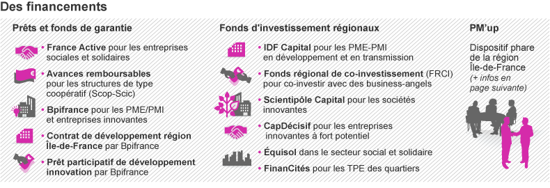 Pour aider à la création ou la reprise d’une entreprise, la Région île-de-France a mis en place des financements et des lieux spécifiques.