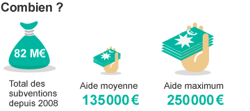 PM’up représente 82 millions d’euros de subventions depuis 2008, pour une aide moyenne de 135000 euros et une aide maximum de 25000 euros.