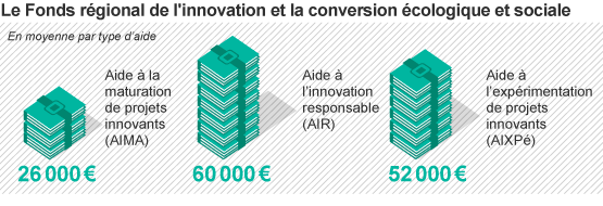 Le Fonds régional de l’innovation et la conversion écologique et sociale aide, en moyenne, à hauteur de 26000€ la maturation de projets innovants, 60000€ l’innovation responsable et 52000€ l’expérimentation de projets innovants.