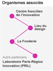 Des organismes y sont associés tels que le Centre Francilien de l’innovation, le Lieu du Design, la Fonderie, ou encore le Laboratoire Paris-Région Innovation.