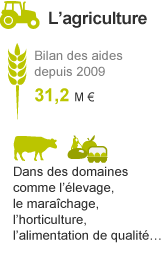 L'agriculture, secteur qui a reçu 31,2 millions d'euros depuis 2009 dans des domaines comme l'élevage, le maraîchage, l'horticulture ou l'alimentation de qualité.