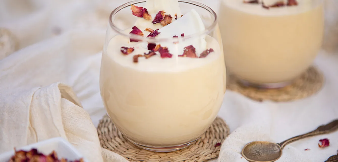 Dresser le coulis de banane au fond d’une assiette creuse. Verser sur le dessus la soupe chocolat blanc. Décorer de quelques fruits et pluches de menthe fraîche.