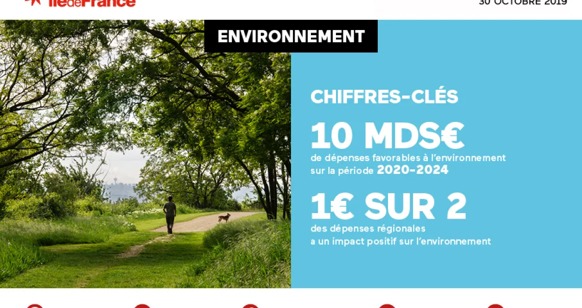 L’Île-de-France tend à devenir une région plus verte, plus propre et plus respirable, tournée vers un urbanisme et une agriculture durables, et les énergies renouvelables. Elle se traduit par un budget renforcé de 35 % en investissements entre 2016 et 2017, mobilisant au total 109 millions d'euros. Ce budget permet de soutenir les initiatives des communes, des entreprises, des associations, pour améliorer le cadre de vie quotidien des Franciliens. L'action régionale pour l'environnement se concentre notamment sur la création d’espaces verts, la valorisation des milieux naturels, la gestion des déchets, et un aménagement plus équilibré et moins minéral du territoire.