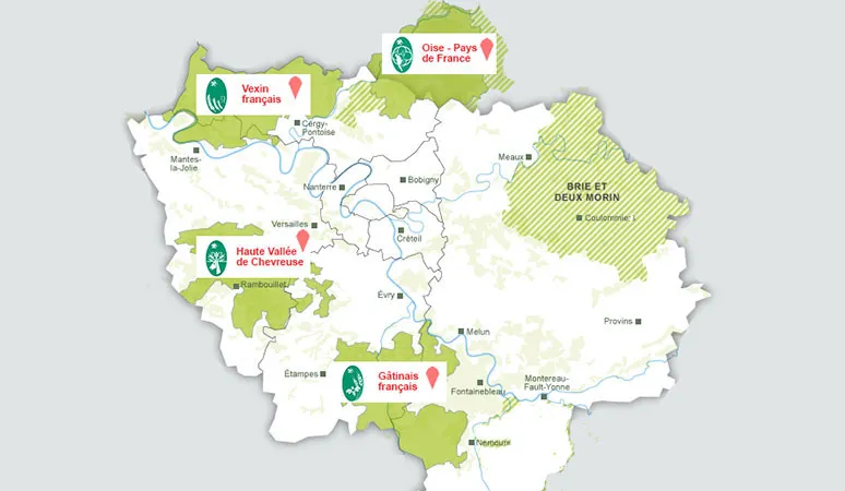 L’Île-de-France compte 4 Parcs naturels régionaux (un ensemble de plus de 2.700 km², qui représente 20% du territoire régional et où vivent plus de 450.000 Franciliens) :