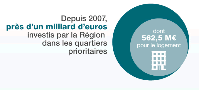 La Région fait le bilan de son action en faveur du renouvellement urbain dans les quartiers prioritaires : depuis 2007, la Région a mobilisé près d’un milliard d’euros, afin d’y améliorer la qualité de vie et les conditions de logement des habitants.