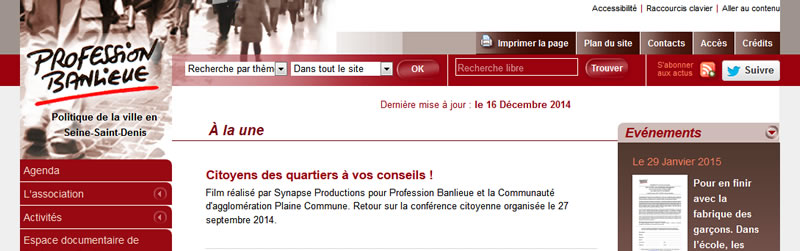 Depuis 1993, Profession Banlieue joue un rôle de qualification et d’animation de la réflexion collective auprès des acteurs et des professionnels de la politique de la ville (associations, agents des collectivités locales, chefs de projets, élus…) de Seine-Saint-Denis et des départements franciliens qui ne comptent pas de centre de ressources sur leur territoire. Il constitue un appui essentiel à la mise en œuvre des politiques publiques dans les quartiers prioritaires. Les 3 centres de ressources associatifs franciliens ont signé en 2012 une convention d’objectifs et de moyens avec la Région Île-de-France.