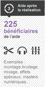 La région aide également à diffuser les créations à travers 46 festivals et réseaux cinématographiques (1,3 million d'euros en 212), 7 cinémas rénovés (2 millions d'euros en 2012) et l'équipement numérique des cinémas franciliens (141 sur 303 équipés depuis 2010).