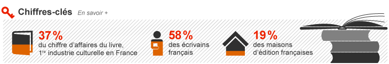 La Région Île-de-France occupe une place à part dans l'industrie du livre français : elle concentre 37% du chiffre d'affaires de ce secteur, 1re industrie culturelle en France, 58% des écrivains et 19% des maisons d'édition.