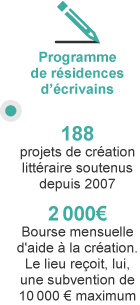 La Région soutient la chaîne du livre à hauteur de 4,2 millions d'euros en 2012. Aucun maillon n'est oublié. Les écrivains peuvent bénéficier de résidences : 188 projets de création littéraire ont été soutenus depuis 2007. Ils reçoivent alors une bourse mensuelle de 2000 euros et le lieu qui les accueille une subvention de 10 000 euros maximum.