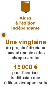 L'édition indépendante bénéficie d'une vingtaine de soutiens annuels pour des porjets éditoriaux exceptionnels et 15000 pour favoriser leur diffusion.