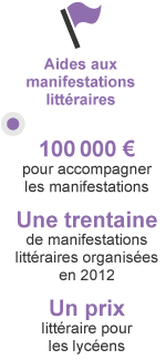 Les manifestations littéraires - une trentaine en 2012 - se voient accompagner de 100 000 euros maximum si elles ont une envergure régionale. Le prix littéraire des lycéens a beaucoup de succès.