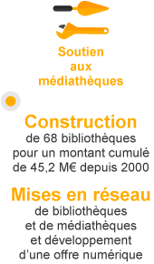Enfin, la Région a aidé à construire 68 bibliothèques pour un montant cumulé de 45,2 millions d'euros depuis 2000. La mise en réseau des médiathèques et le développement de l'offre numérique sont en cours.