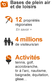 Les 12 bases de loisirs sont des propriétés régionales, qui accueillent 4 millions de visiteurs par an et proposent des activités diverses : tennis, golf, accrobranche, tir à l'arc, nautisme, baignade, équitation, glisse… La Région permet aux jeunes défavorises, aux familles très modestes et aux publics handicapés d'accéder aux bases via les tickets-loisirs : plus de 90 000 diffusés en 2012.