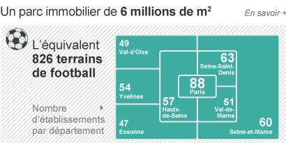 Les 469 lycées d'Île-de-France représentent le 3e secteur des crédits de la Région. En 2013, 786 millions seront consacrés aux investissements et 516 millions au fonctionnement. Ce parc immobilier s'étend sur 6 millions de m2, l'équivalent de 826 terrains de football. On compte 88 établissements dans le département de Paris, 63 en Seine-saint-Denis, 60 en Seine-et-Marne, 57 dans les Hauts-de-Seine, 54 dans les Yvelines, 49 dans le Val-d'Oise et 47 en Essonne.