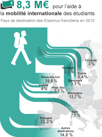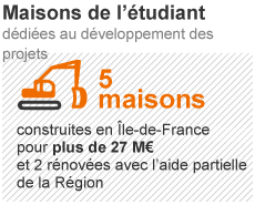 En outre, 5 maisons de l'étudiant ont été construites en Île-de-France pour plus de 27M€ et 2 rénovées avec l'aide partielle de la région. Enfin, 8,3 M€ sont dédiés en 2013 à la mobilité internationale des étudiants franciliens, qui vont majoritairement en Espagne (22,2%) et en Allemagne (13,7%).