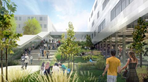 Le besoin de surfaces supplémentaires dans le secteur a conduit à une réflexion globale sur ce site dont la particularité est le dénivelé spectaculaire. L’opération d’extension et de rénovation, offrira des espaces pédagogiques et de vie scolaire adaptés aux nouveaux usages.