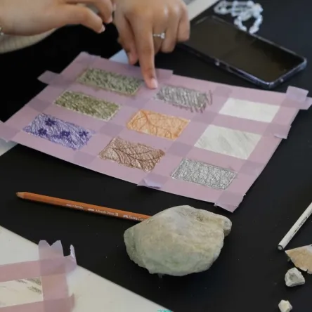 En travaillant autour d’éléments naturels prélevés lors d’une déambulation sur le domaine, les apprentis coloristes sont invités à réaliser un nuancier sensible du parc et de ses couleurs.