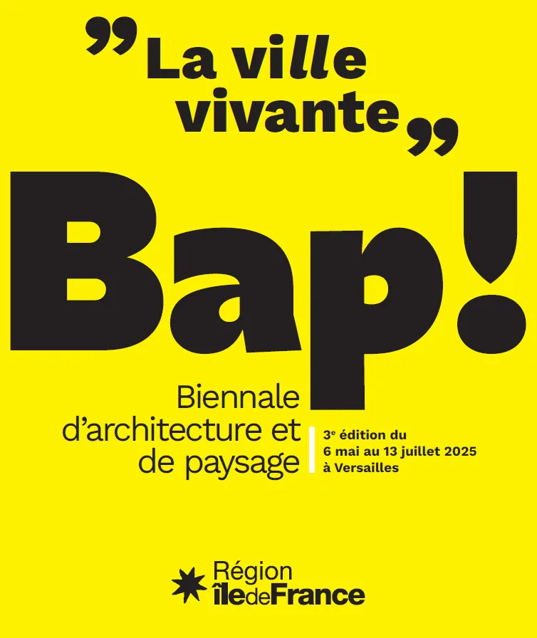 Ville vivante Le grand événement de la Région consacré à l'urbanisme, au paysagisme et à l'architecture est de retour. Du 7 mai au 13 juillet 2025 à Versailles, la 3e édition de la Bap! invite à des conférences, débats, ateliers participatifs et expos sur le thème de « la ville vivante », qui s'adapte aux changements climatiques tout en préservant le vivant. Entièrement gratuit.
