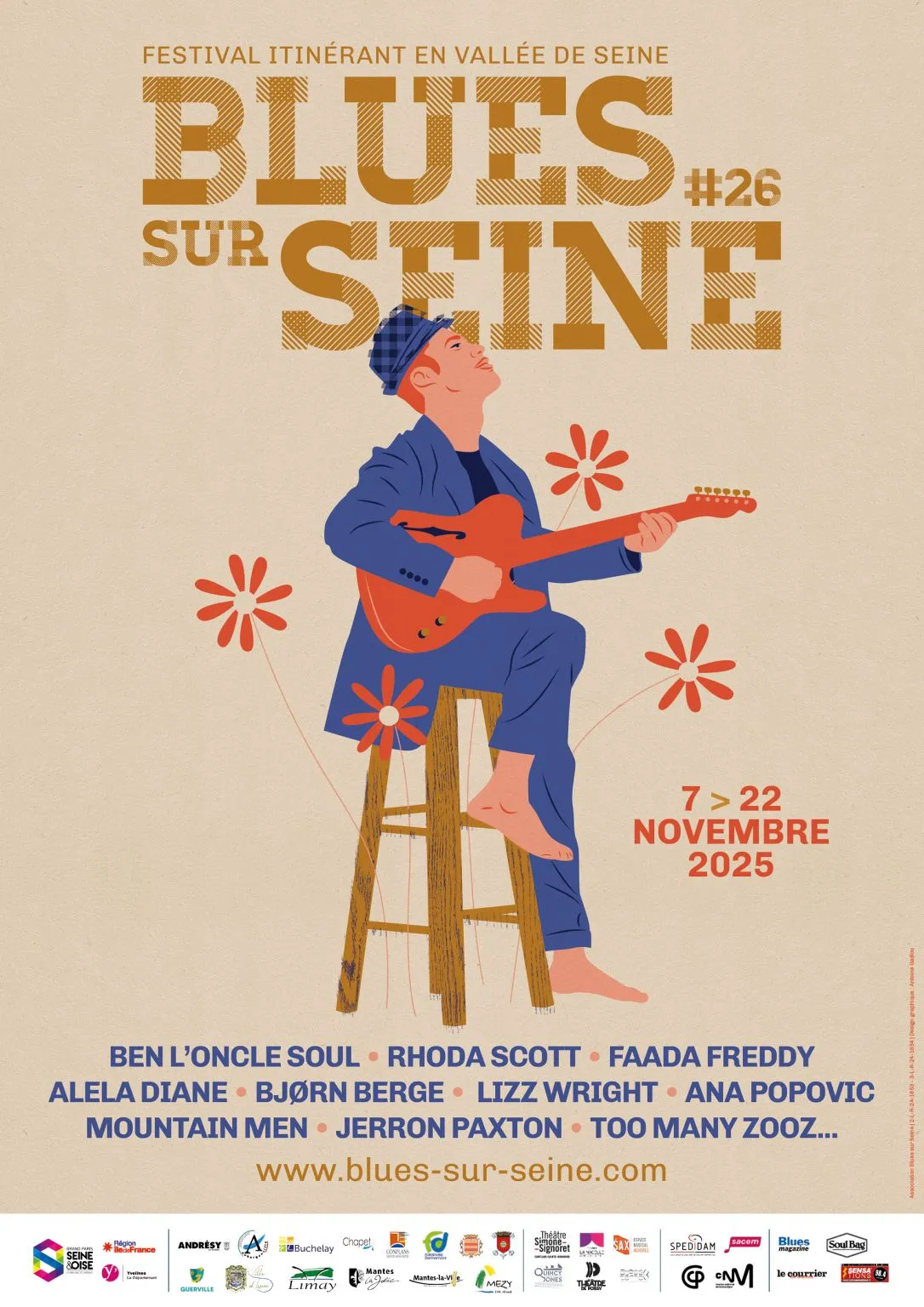 Blues sur Seine revient, pour sa 26e édition, du 7 au 22 novembre 2025 dans la Vallée de Seine, dans les Yvelines (78). Avec l'intention, encore une fois, d'offrir l'occasion d'entendre le meilleur du blues et de ses dérivés.