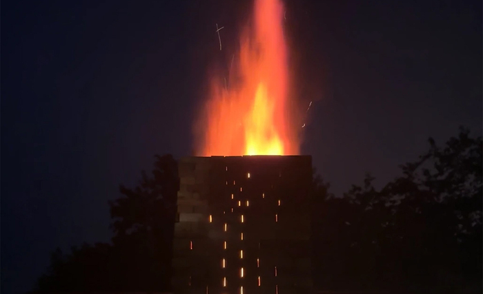 En deux temps, au cours d'un même week-end, se déroulent la construction puis la cuisson d’un four à bois dédié à la céramique.