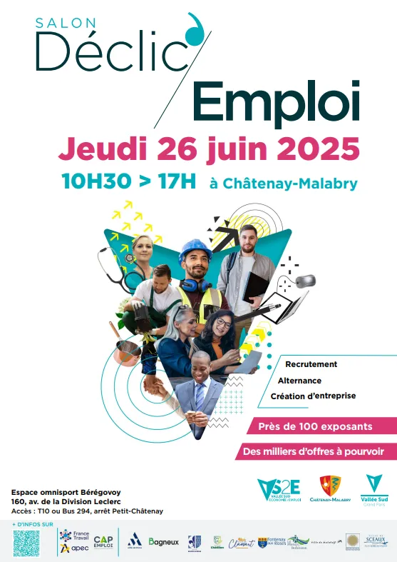 Salon de l'emploi du Sud francilien, Déclic'Emploi est organisé le 26 juin 2025 à l'espace omnisport Pierre-Bérégovoy, à Châtenay-Malabry (92).