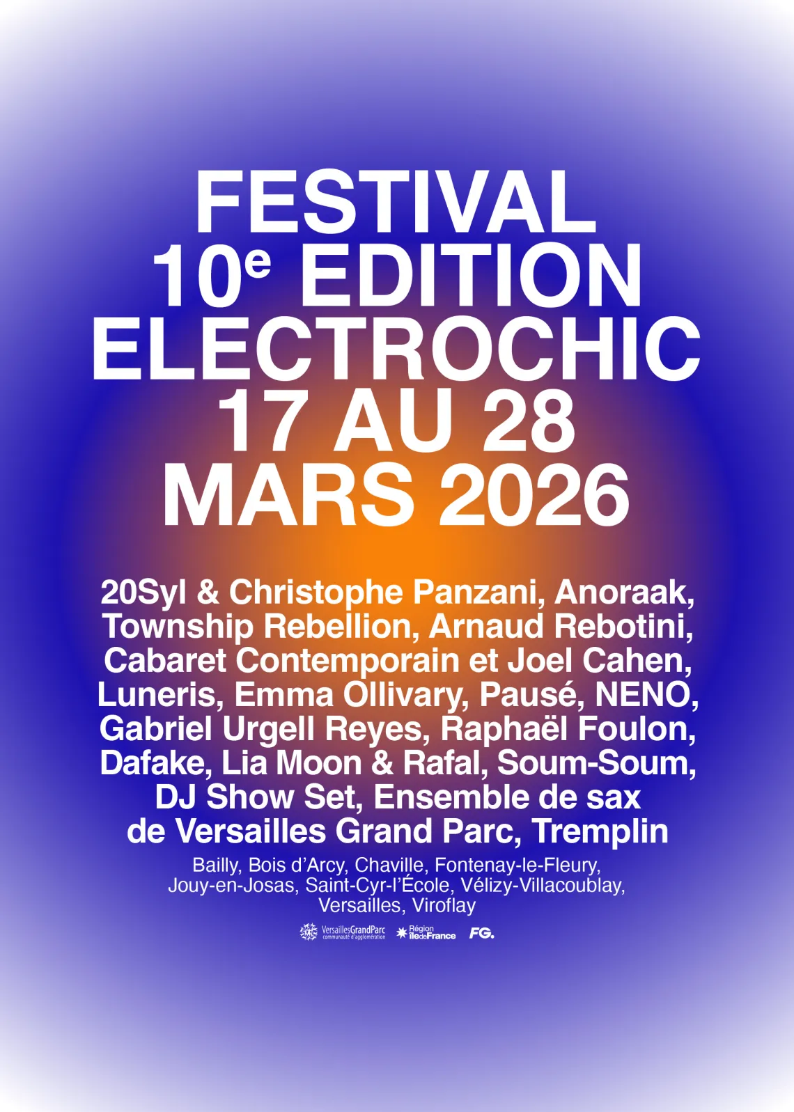 Musiques életcroniques Concerts – dont un dans une piscine ! –, DJ sets, rencontres musicales et ateliers sont au programme du festival électro de l'Ouest parisien, du 17 au 28 mars 2026 à Versailles et alentour. Avec 15 artistes dont Arnaud Rebotini, 20Syl, Christophe Panzani, Neno, Soum-Soum et Emma Ollivary.