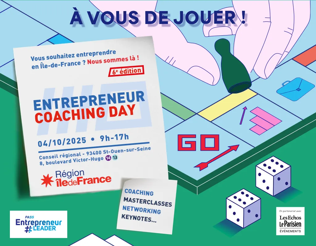 Avec Les Échos Le Parisien Événements, la Région organise ce 4 octobre 2025 de 9h à 17h, dans ses locaux à Saint-Ouen (93), la 6e édition d’Entrepreneur Coaching Day.