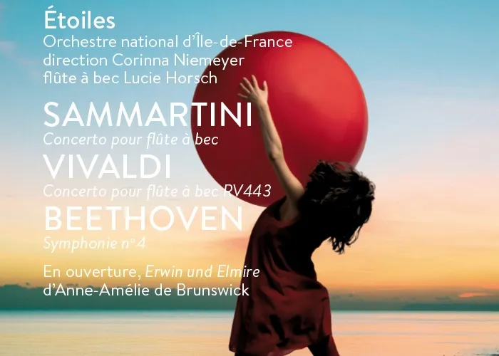 Musique Accompagnée par l'Orchestre soutenu par la Région, la jeune flûtiste Lucie Horsch joue Beethoven, Vivaldi, Sammartini et Anne-Amélie de Brunswick. Au Théâtre de Brunoy le 25 novembre 2023, à la Cité de la musique à Paris le 28 et au Théâtre du Vésinet le 29.