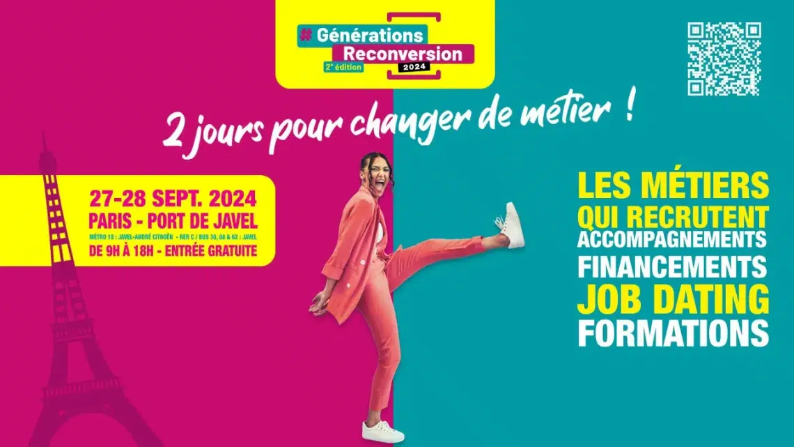 Destiné à tous ceux qui souhaitent changer de métier, le salon Générations reconversion se tient, pour sa 2de édition, ces 27 et 28 septembre 2024 à Paris, sur le port de Javel (15e).