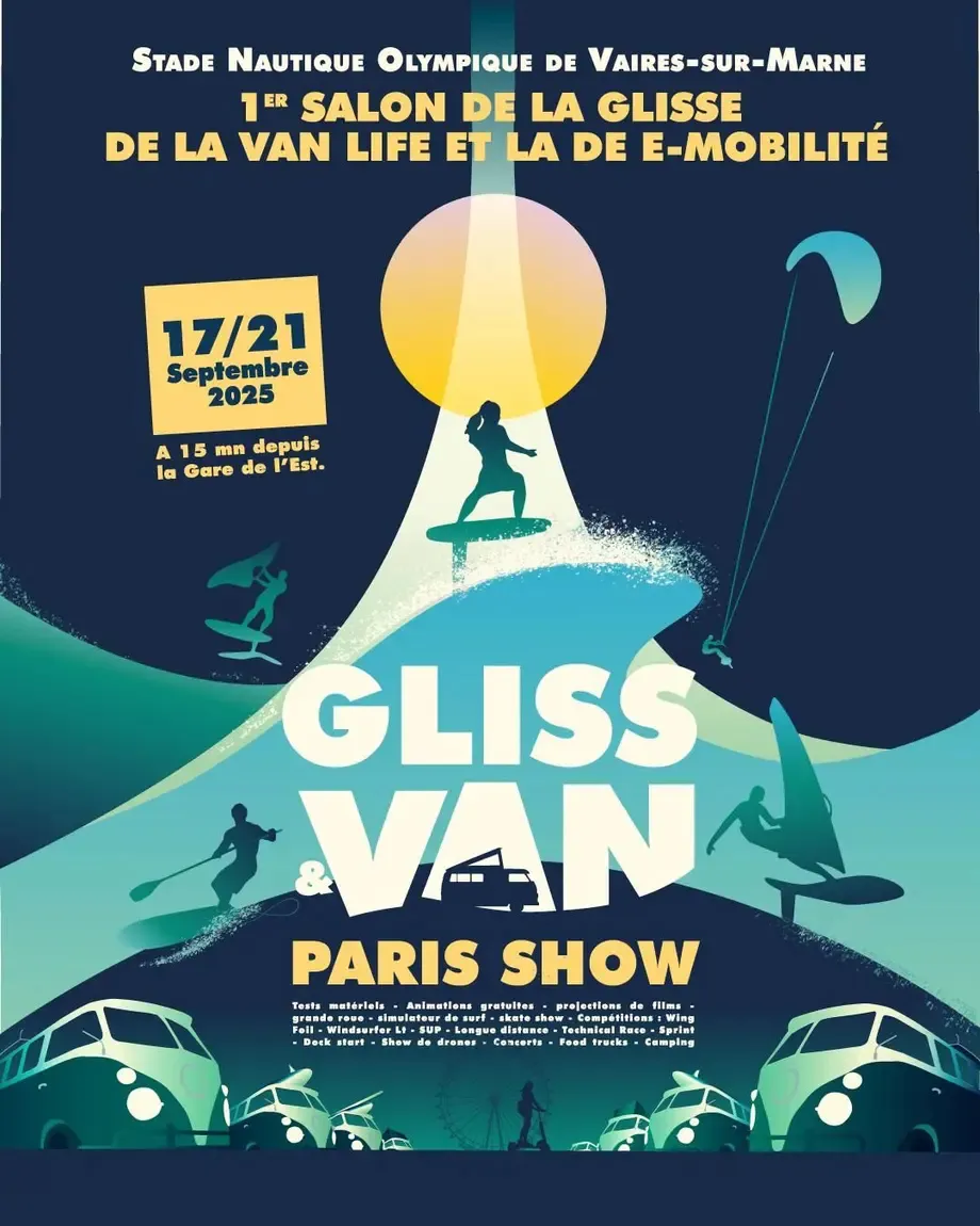 Organisé avec le soutien de la Région au Stade nautique olympique de Vaires-sur-Marne (77) du 17 au 21 septembre 2025, le Gliss & Van Paris Show est le tout premier salon grand public et professionnel consacré à 2 univers à la fois :