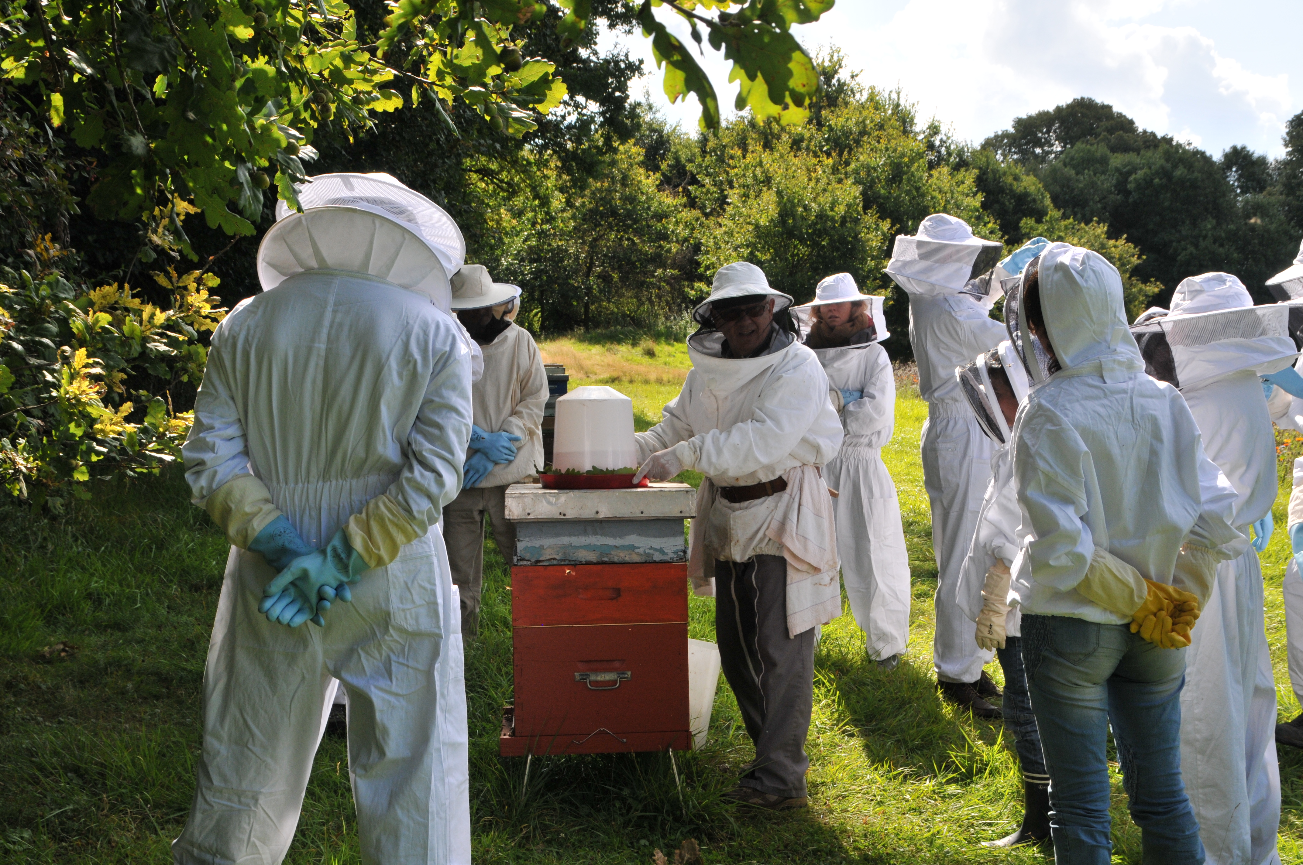 - Une partie pratique (auprès des ruches de Villarceaux, en petit groupe de 10 à 12 personnes).