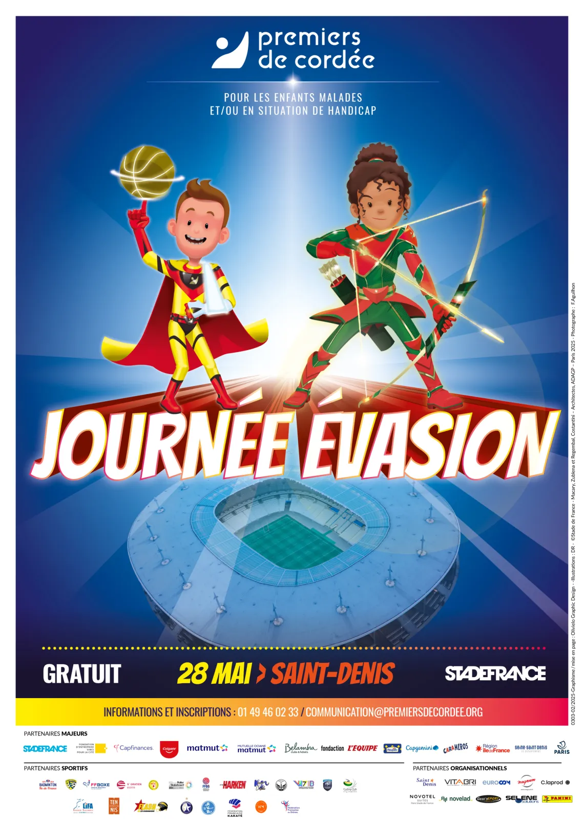 Ce 28 mai 2025, avec le soutien de la Région notamment, elle propose à des milliers d'enfants dans de telles situations un événement géant : une Journée Évasion au Stade de France, à Saint-Denis (93).