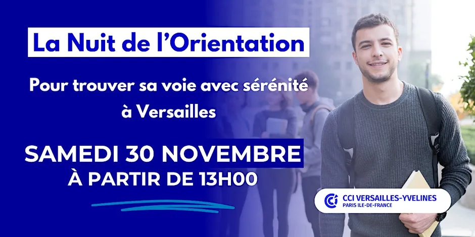 Oriane, l'agence de l'orientation de la Région, participe de 2 façons à la Nuit de l'orientation, organisée le 30 novembre 2024 de 13h à 18h, par la Chambre de commerce et d'industrie de Versailles (78) :