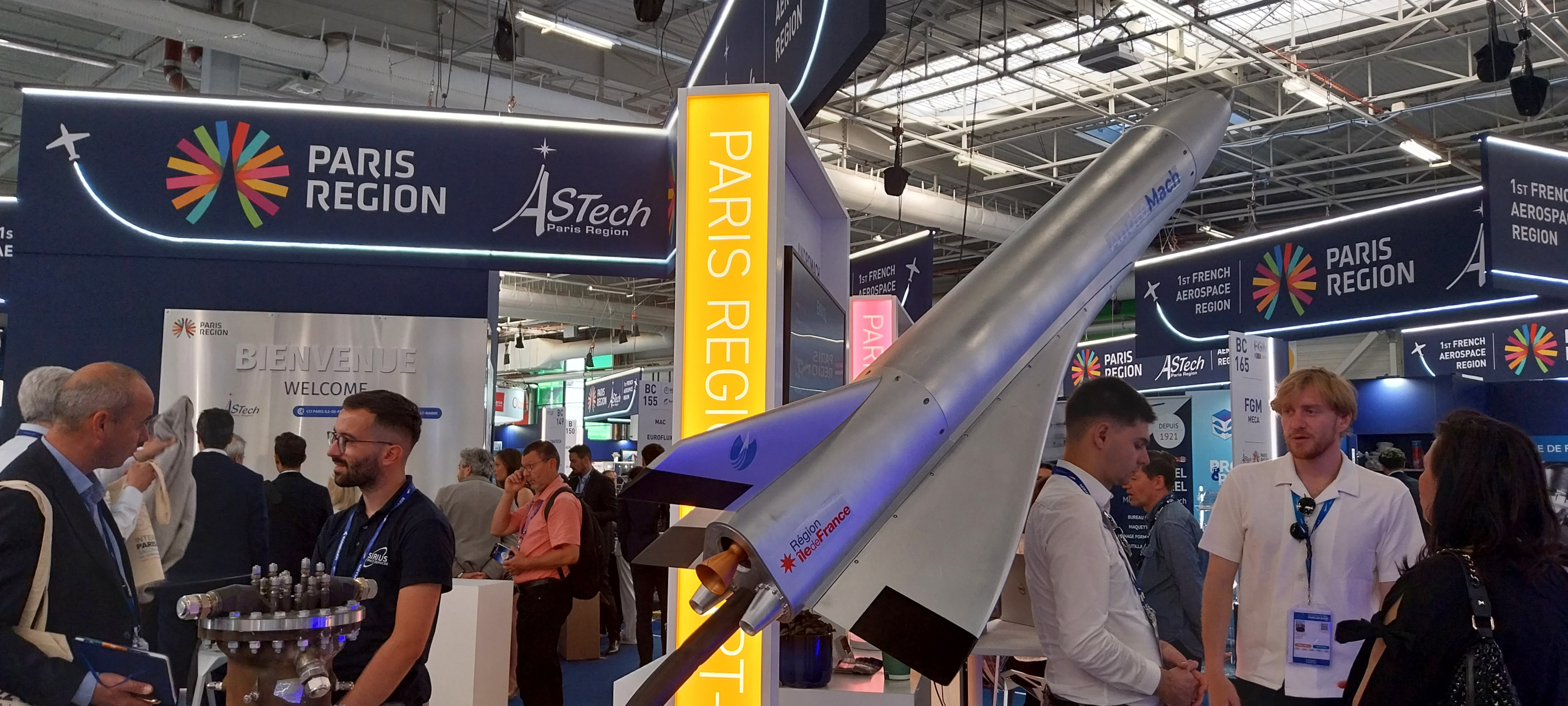 La Région Île-de-France est présente au Salon international de l’aéronautique et de l’espace sur un espace régional de plus de 1 200 m² qu'elle partage avec la CCI (Chambre de commerce et d'industrie) Paris Île-de-France et le pôle de compétitivité ASTech Paris Region (qui fédère les acteurs de l'aéronautique, du spatial et de la défense en Île-de-France).