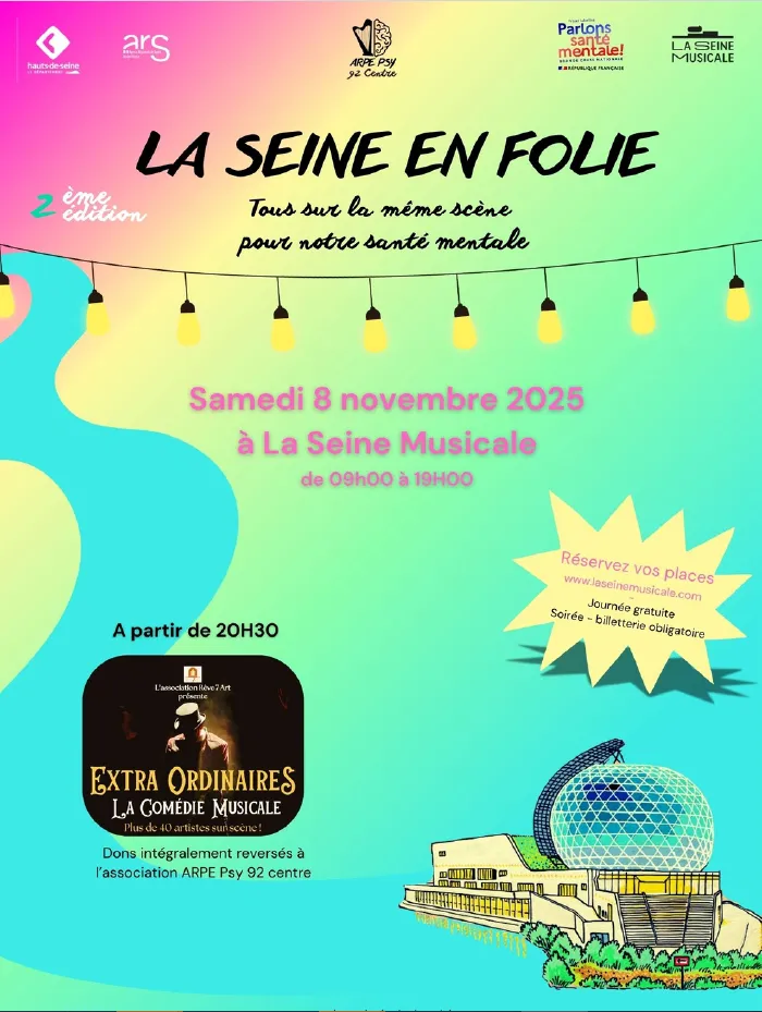 Organisée avec le soutien de la Région le 8 novembre 2025 à la Seine Musicale, à Boulogne-Billancourt (92), la Seine en Folie, dont c'est la 2de édition, est une journée exceptionnelle autour de la santé mentale, de la culture et du partage.