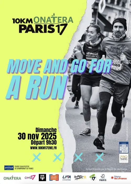 Course Soutenue par la Région, une course de 10 km chronométrée qui permet de (re)découvrir le patrimoine culturel et architectural du 17e arrondissement de Paris, mais aussi ses grandes artères aérées et ses rues larges souvent boisées. Ce 30 novembre 2025 dès 9h30.