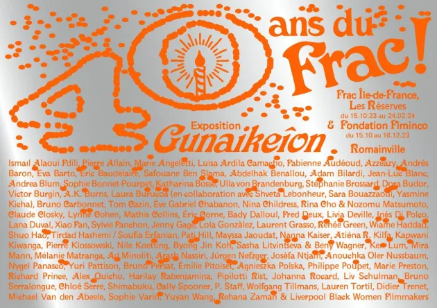 Art contemporain Le Fonds régional d'art contemporain fête ses 40 ans à Romainville, du 15 octobre 2023 au 24 février 2024, avec une expo en 5 parties. Chacune orchestrée par une commissaire femme, sur une thématique différente.