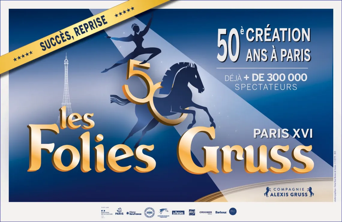 La compagnie équestre Gruss, à laquelle la Région accorde son soutien, se produit jusqu'au 29 mars 2026, sous son immense chapiteau installé au bois de Boulogne, à Paris (16e), pour présenter la 52e création de ses Folies Gruss.