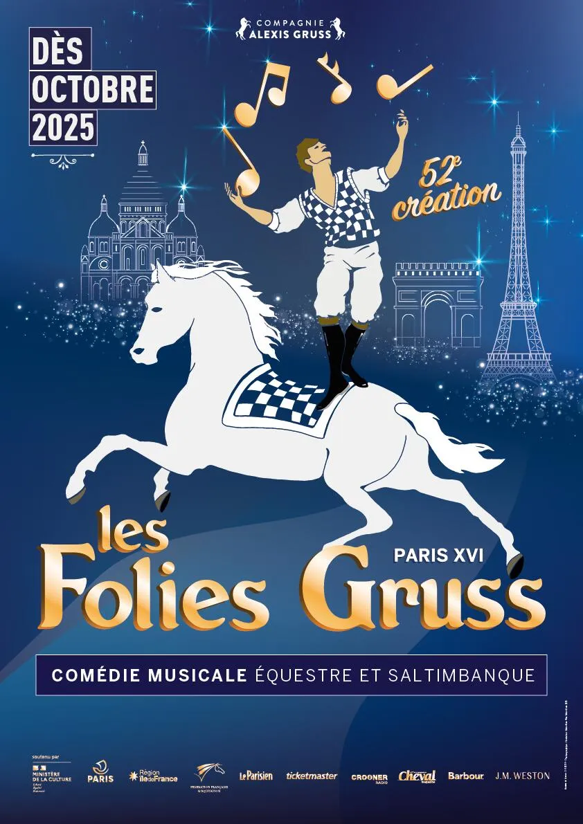 La compagnie équestre Gruss, à laquelle la Région accorde son soutien, se produit jusqu'au 29 mars 2026, sous son immense chapiteau installé au bois de Boulogne, à Paris (16e), pour présenter la 52e création de ses Folies Gruss.