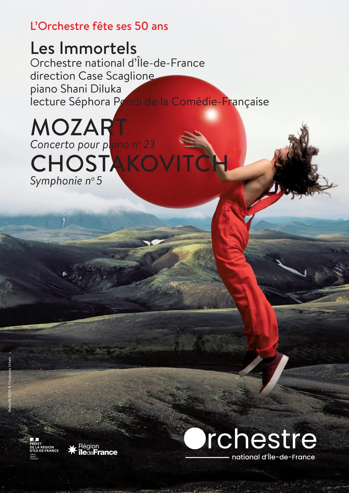 Musique classique L'Orchestre soutenu par la Région et qui fête ses 50 ans en 2024 rend hommage à 2 géants, Wolfgang Amadeus Mozart et Dimitri Chostakovitch, le 23 mars 2024 à Alfortville, le 25 à Paris et le 28 à Enghien-les-Bains.