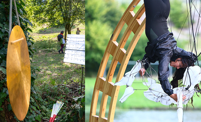 Et si, vous aussi, vous deveniez oiseau ? On vous donne un petit instrument – un triangle, un wood block, un gong. Vous choisissez votre territoire dans la forêt, vous écoutez les autres, vous leur répondez.