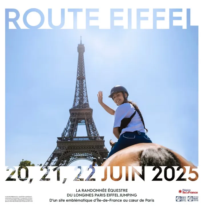 - La Route Eiffel Région Île-de-France, du 20 au 22 juin 2025, qui réserve une découverte de Paris... à cheval aux cavaliers d’un niveau équestre au moins égal au Galop 5 et adeptes d’expériences hors du commun !