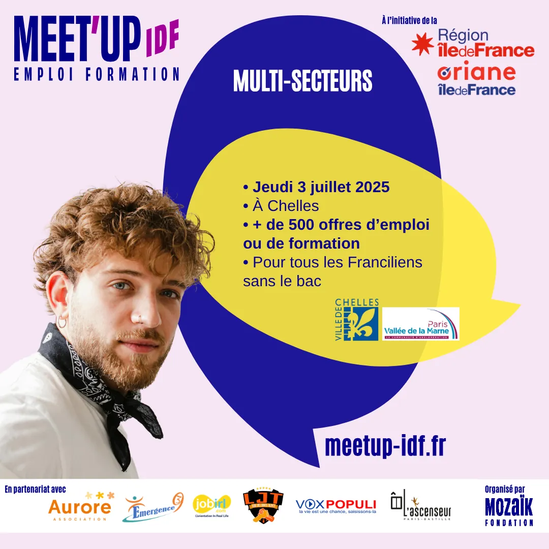 - Meet’Up IDF Emploi Formation multi-secteurs le 3 juillet 2025, de 9h à 17h, à Chelles (77),
