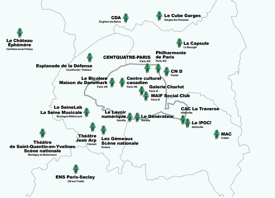 Dans 24 lieux d'Île-de-France, répartis dans 13 villes (75, 78, 91, 92, 93, 94, 95)