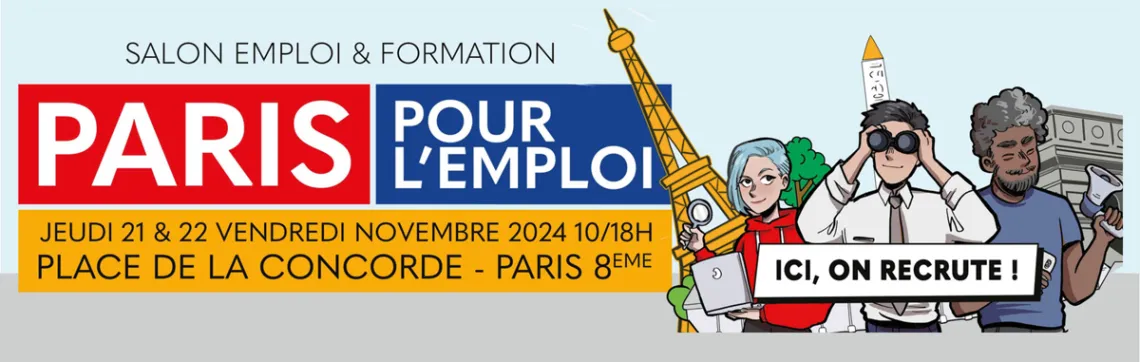 Paris pour l'emploi se réinstalle sur la place de la Concorde, à Paris (8e), ces 6 et 7 novembre 2025 de 10h à 18h, pour ce qui sera sa 23e édition.