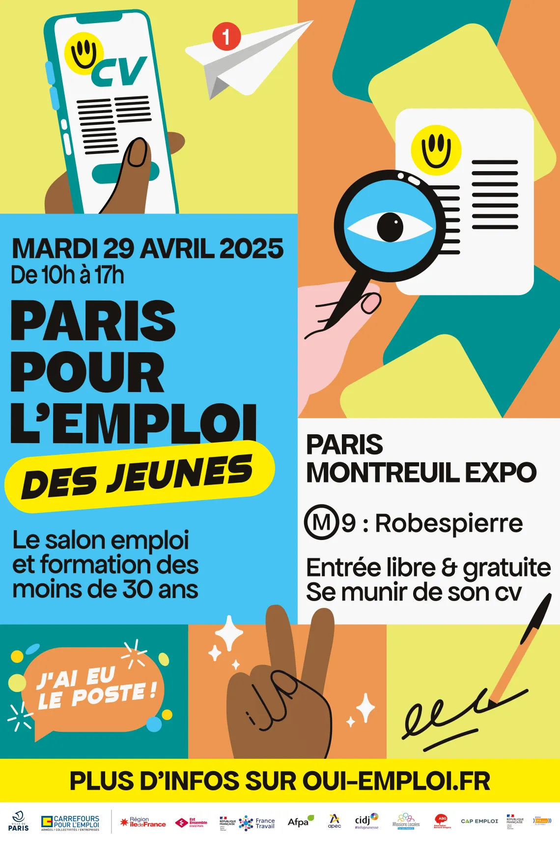 Rendez-vous majeur de l'emploi pour les moins de 30 ans en particulier, Paris pour l'emploi des jeunes se tient ce 29 avril 2025 de 10h à 17h à Montreuil (93).