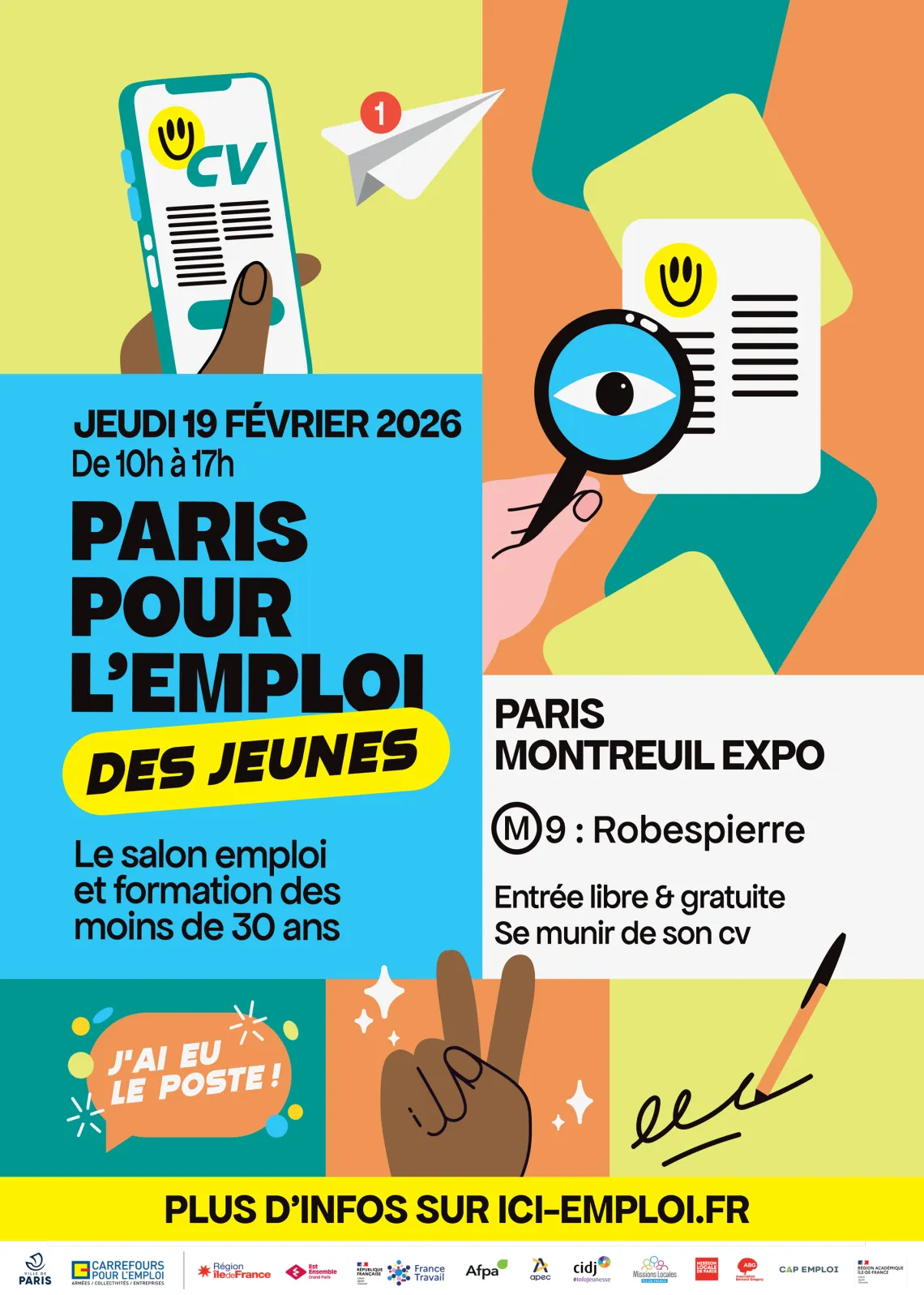 Rendez-vous majeur de l'emploi pour les moins de 30 ans en particulier, Paris pour l'emploi des jeunes se tient ce 19 février 2026 de 10h à 17h à Montreuil (93).