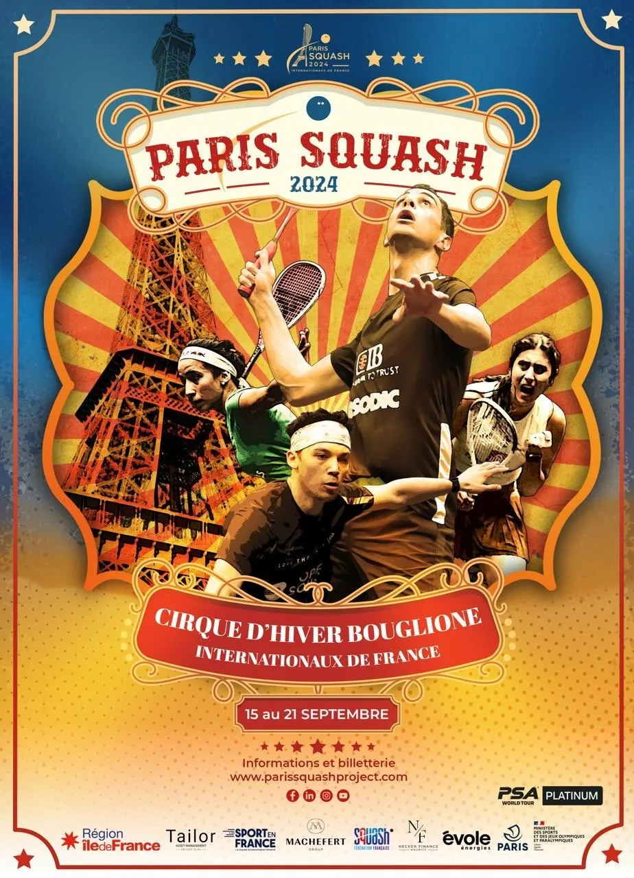 Lob Absent des Jeux de 2024, le squash est en vedette juste après, avec le soutien de la Région. Les meilleurs joueurs du monde s'affrontent du 15 au 21 septembre 2024, sur un court vitré installé au cœur du Cirque d'hiver Bouglione.