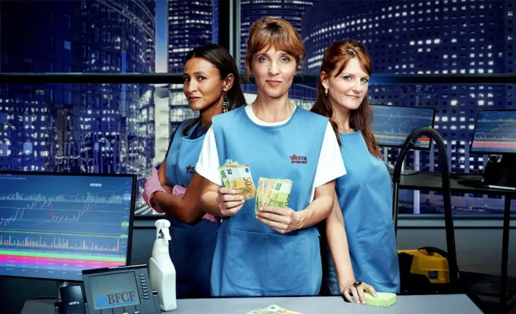 Série TV Aidée par la Région, l’histoire haletante d’un trio de femmes invisibles aux yeux de la société, des femmes de ménage, qui, pour régler leurs problèmes personnels et se venger d’un système financier qui les oppresse, se transforme en joyeuse bande d'apprenties arnaqueuses.