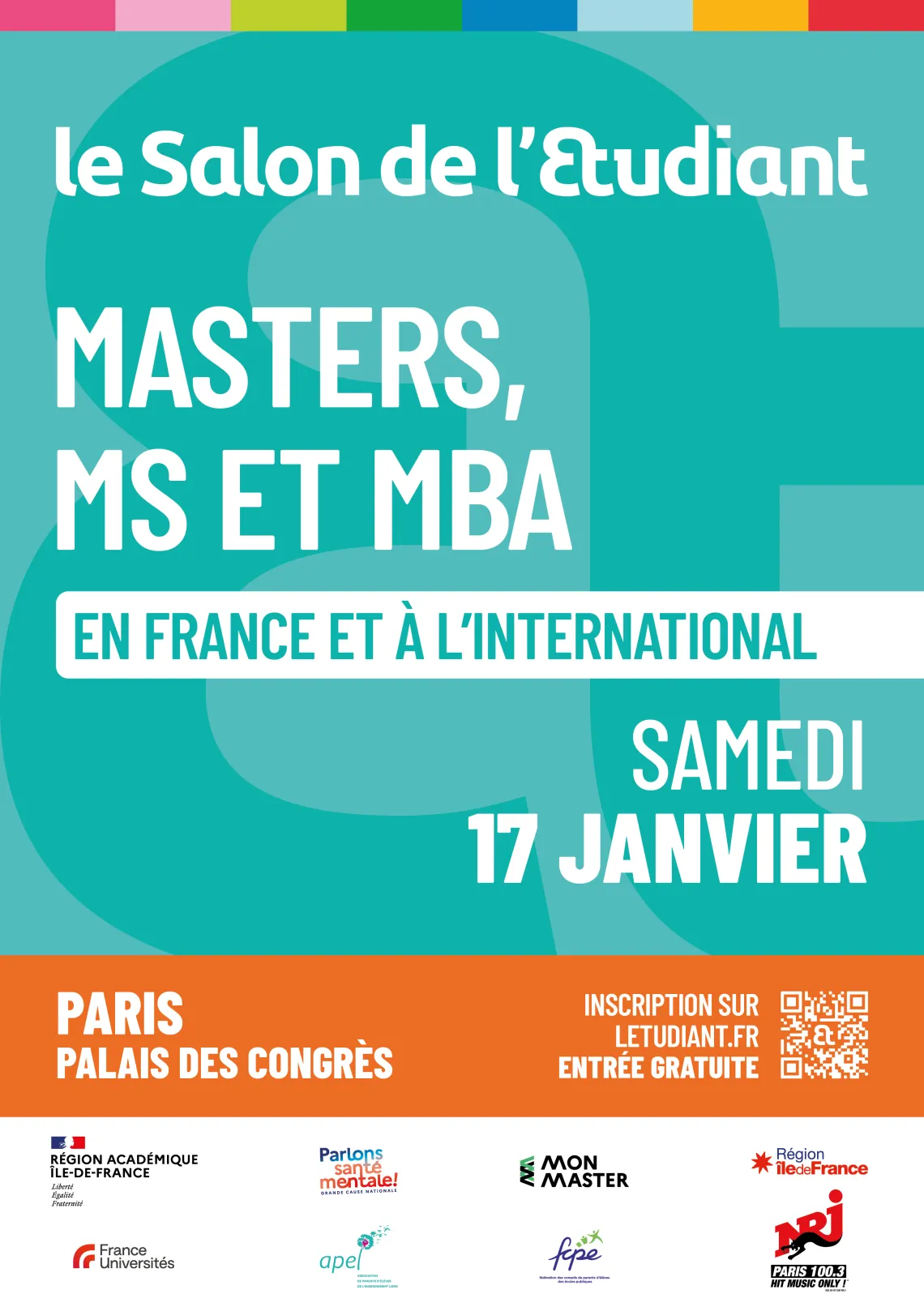 Le Salon l’Étudiant des masters, mastères spécialisés et MBA en France et à l’international se tient ce 17 janvier 2026 au palais des Congrès de Paris (17e) avec le soutien de la Région.